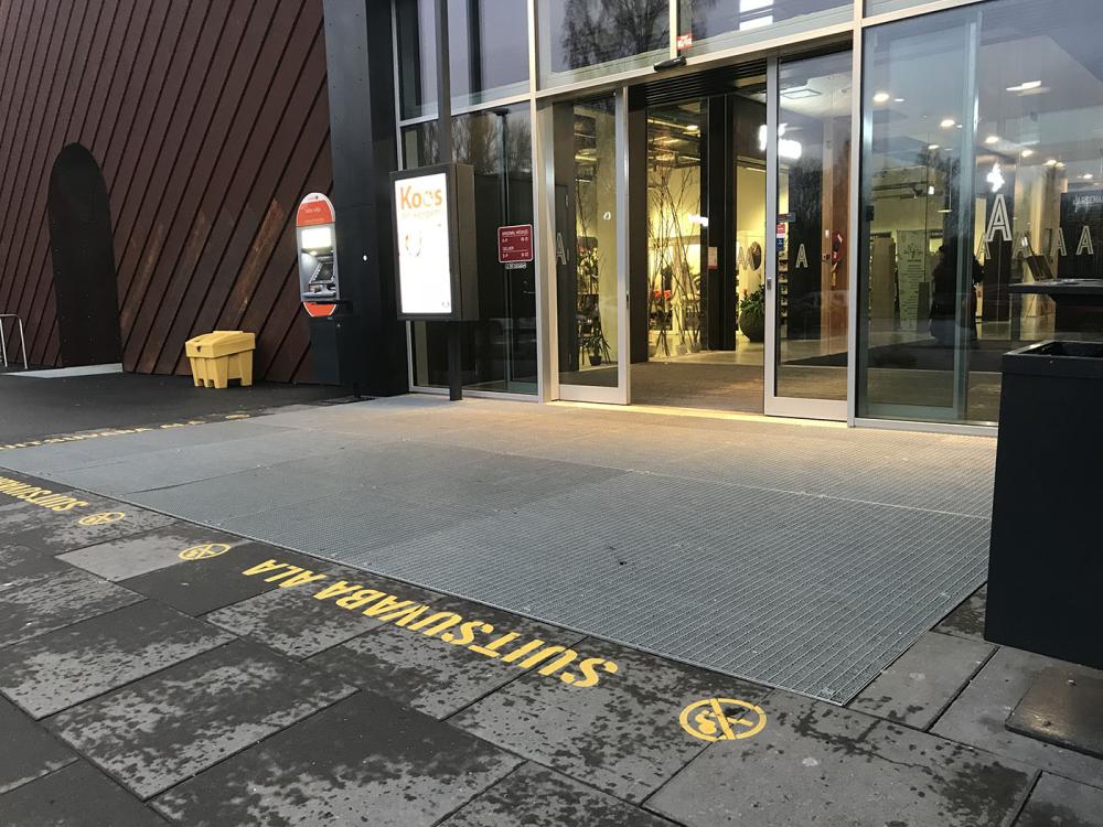 Oleme kindlad, et meie 24 tööaasta jooksul Eestis olete sellest korduvalt üle ja peale  astunud ja teete seda ka edaspidi. Võib-olla on selle aja jooksul rohkem kui üks paar lemmikjalatseid kulunud 😊! Loodame, et keegi meie vastu selle eest nõuet ei esita 😊. Veelgi enam, kui teile meeldib kinos käia, siis vaadake Coca-Cola Plaza Tallinna kino peasissepääsu juures pilk alla ja näete seda imet, mis on teie jalge ees lebanud umbes 22 aastat ja kannab edukalt edasi meie kvaliteedimärki ! 😊 Ja nagu öeldakse, täpselt nagu paraadil 😊!