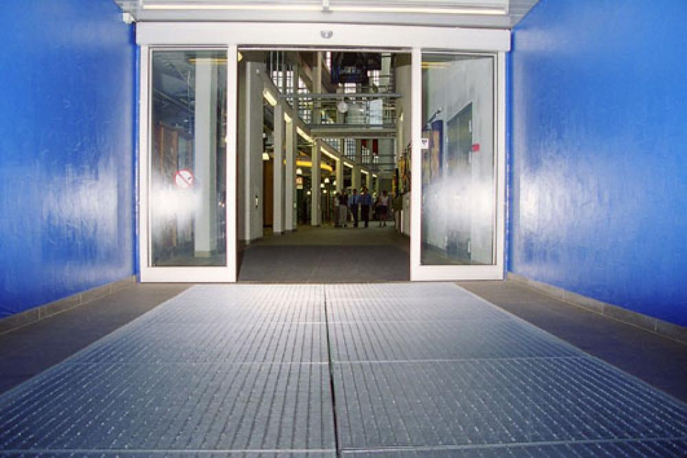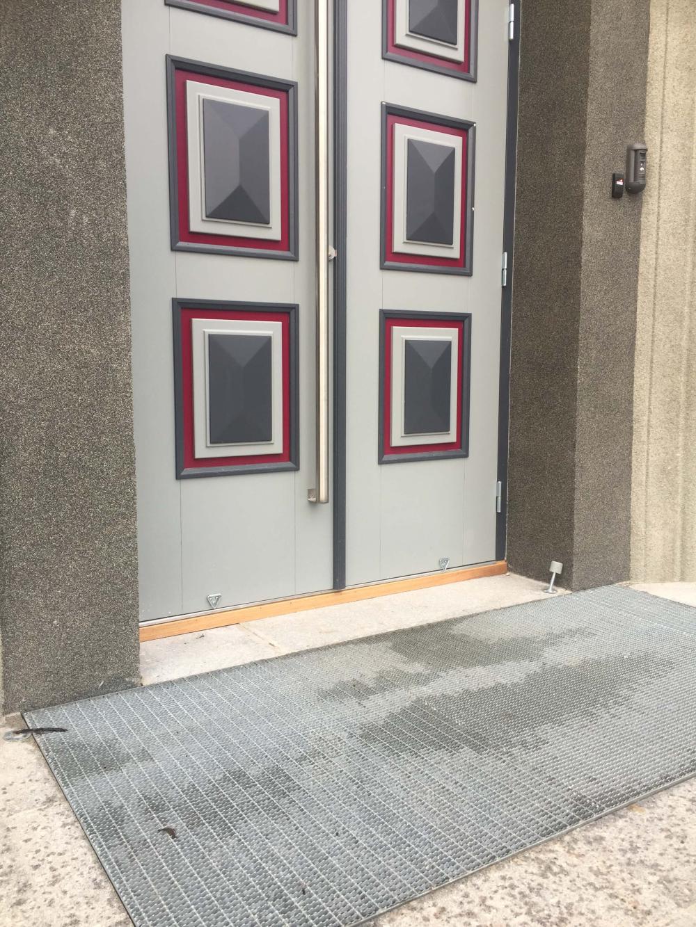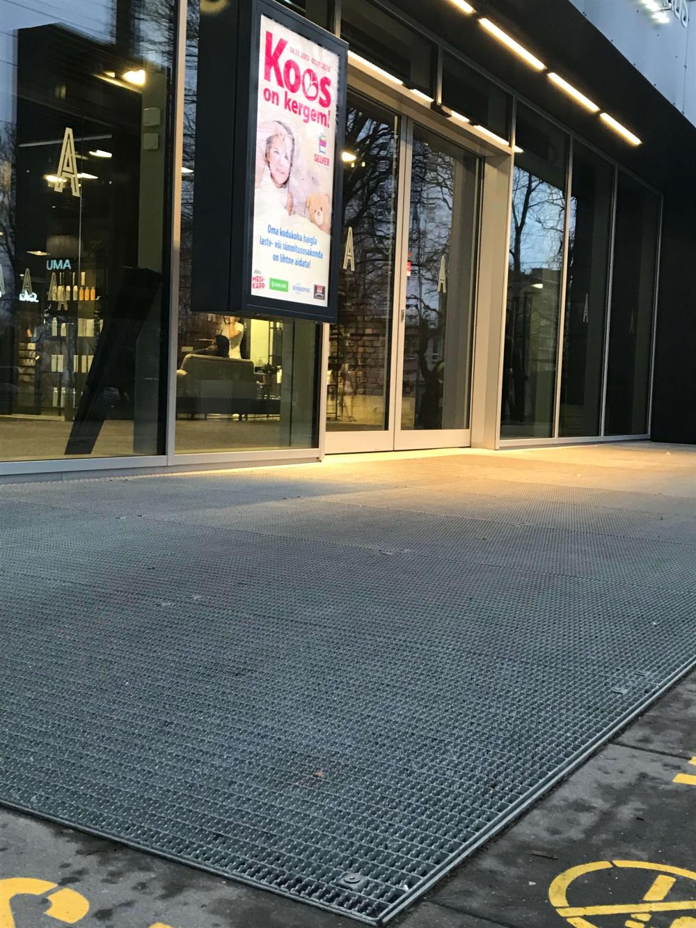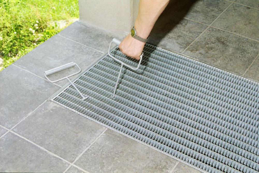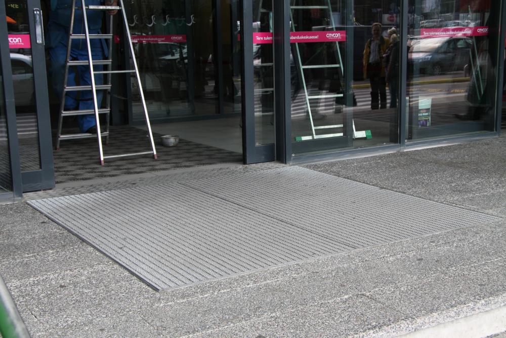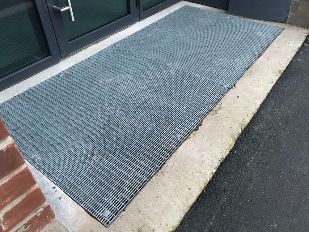 Presspõrandast valmistatud võre jalanõude puhastamiseks.